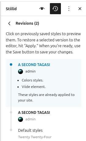 Revisiotoimintoja on laajennettu kattamaan lohkojen ja tyylien muutokset. Näin voit tarkastella kaikkien mallien, lohkojen ja tyylien muutoshistoriaa, mikä antaa vieläkin yksityiskohtaisemman yleiskuvan tehdyistä muutoksista.