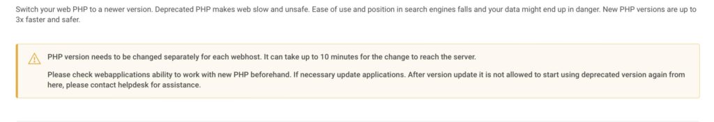 Mitä tehdä, jos PHP-version päivittäminen ei ole mahdollista?