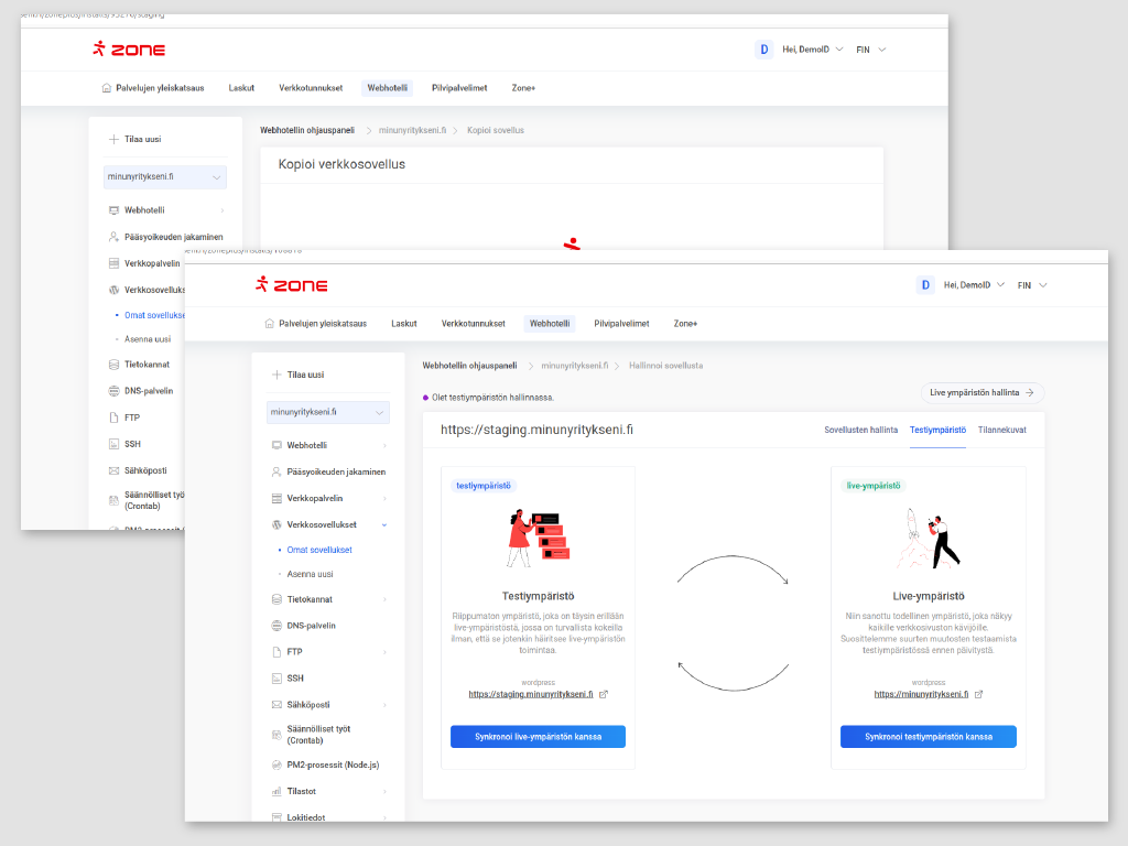 - Vaivattomat Staging sivustot: Luo helposti Staging sivustoja asiakassivuille suoraan palvelimellesi.