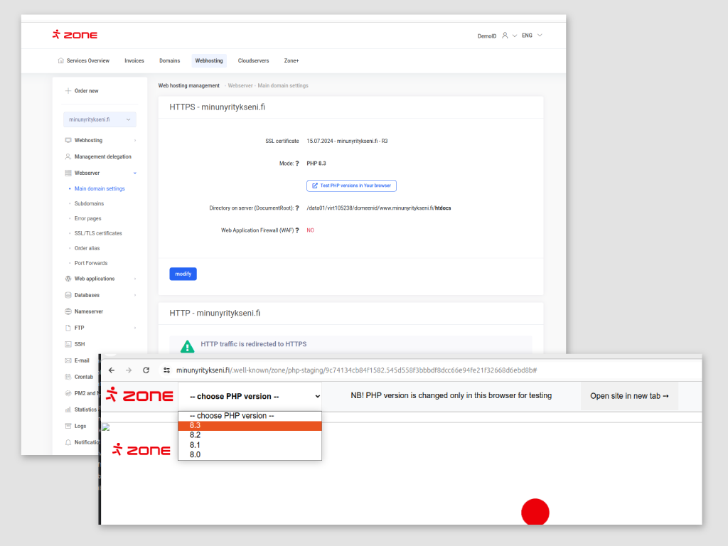 - Pääsy uusimpiin PHP-versioihin: Pysy aina ajan tasalla uusimpien saatavilla olevien PHP-versioiden kanssa.