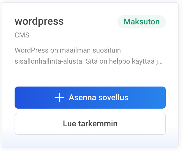 - One-Click Installation & päivitykset: Ota WordPress-sivustosi käyttöön yhdellä klikkauksella! Pysy ajan tasalla vaivattomasti!