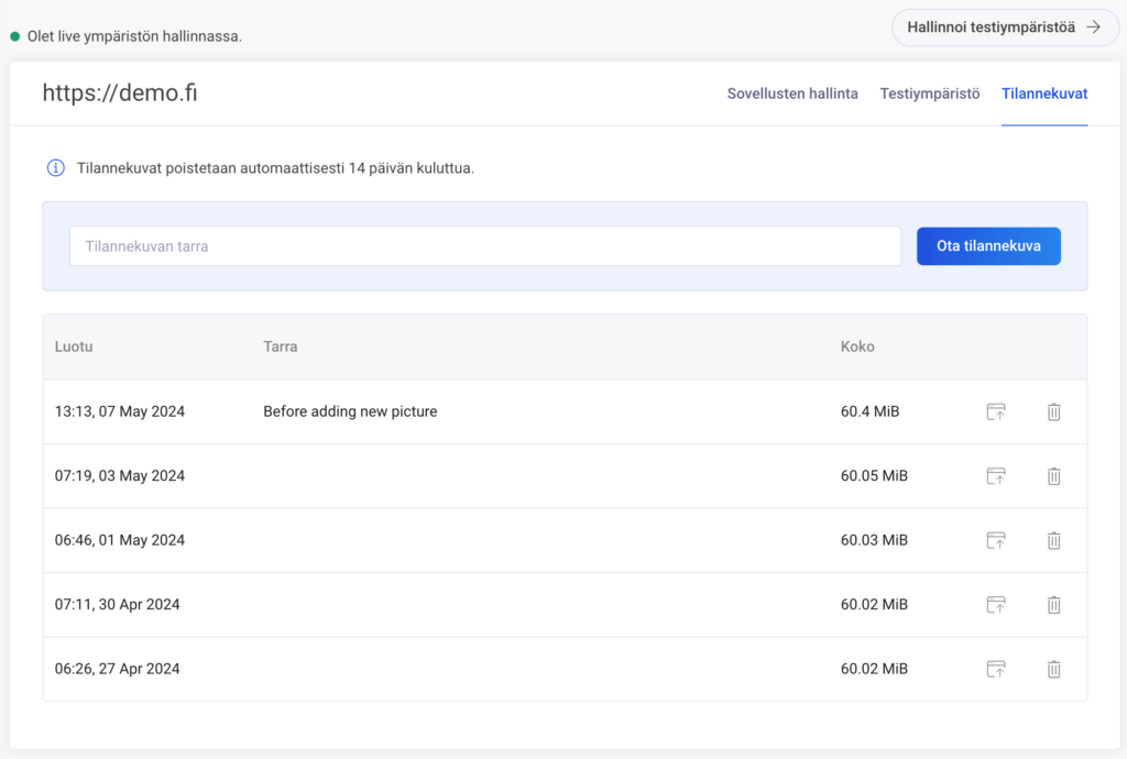 - Snapshot & Rollback pyynnöstä: Ota hetkessä tilannekuvia ja palaa takaisin helposti aina tarvittaessa.