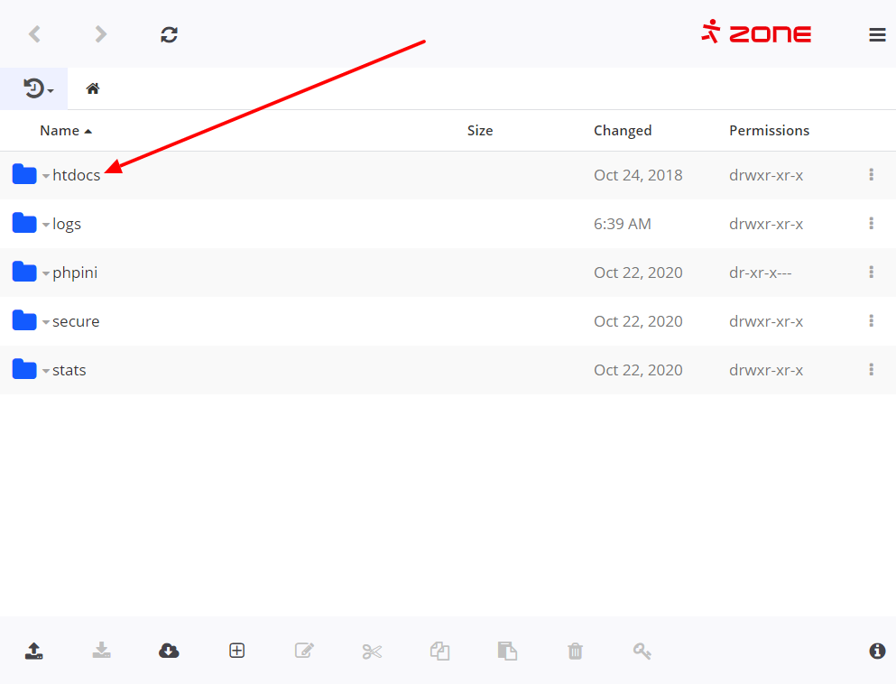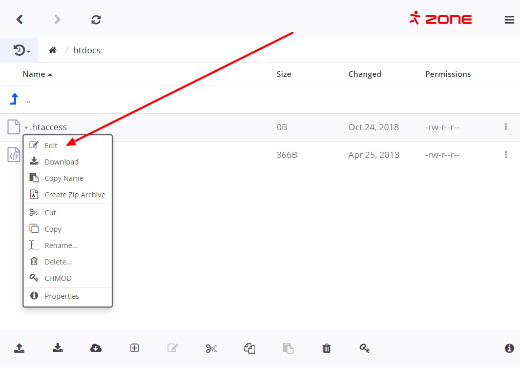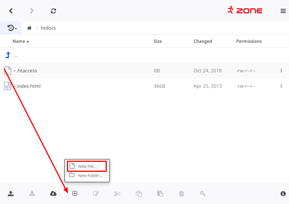 In the new window choose the /htdocs folder and add a file called .htaccess (preceded by a dot).
