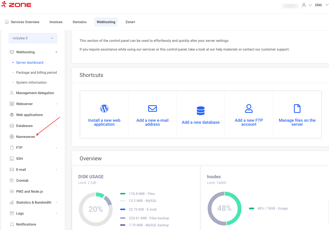 In this case, you can modify the DNS records for the domain from the server management menu in Webhosting > Nameserver.