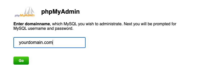 On the next screen, enter the database (MySQL) username and password that you copied from the wp-config.php file.