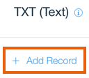 After making the appropriate selection, a new record should be added, i.e. “+ Add Record“, and the record type, i.e. “type”, must be “TXT” (do not set “type” to “SPF”).