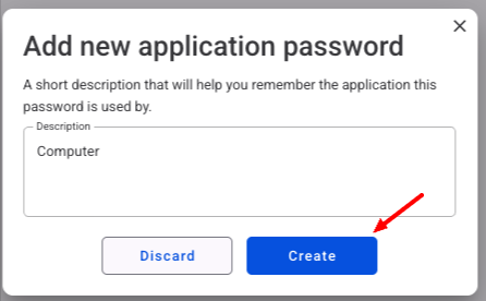 of the application (e.g. Outlook or the name of the device) in the description box and press the Create