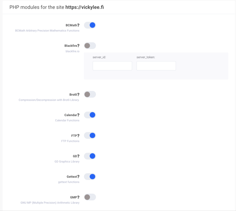 The most common PHP extensions can be changed directly from the My Zone Web Hosting Management.