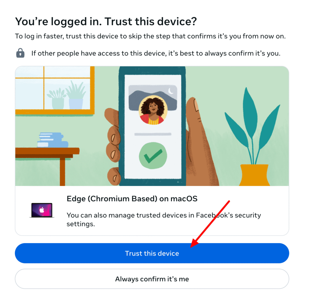 If you have 2FA activated on your Facebook account, you will need to additionally confirm your login on another device or choose another verification method.