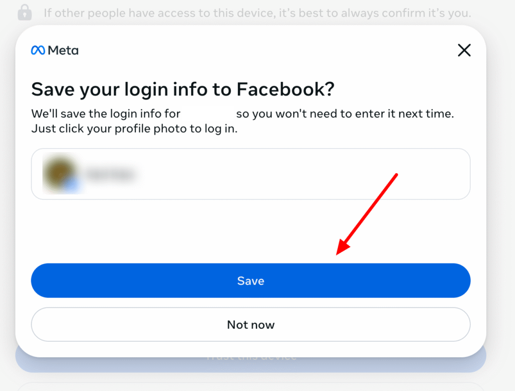 Once the Facebook 2FA code is entered, you will need to click Save in the next window.
