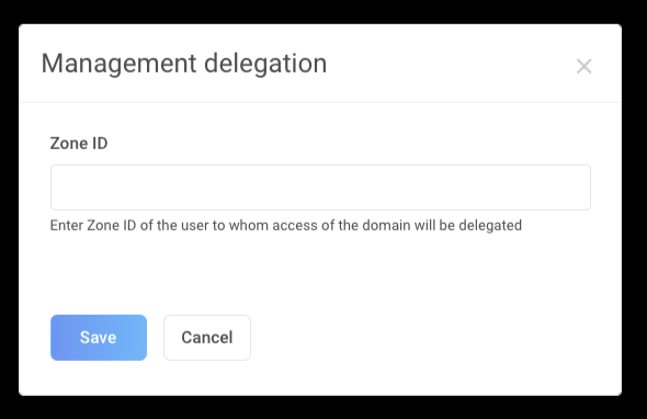 Enter the ZoneID username of the person you wish to delegate management rights to and click Save.