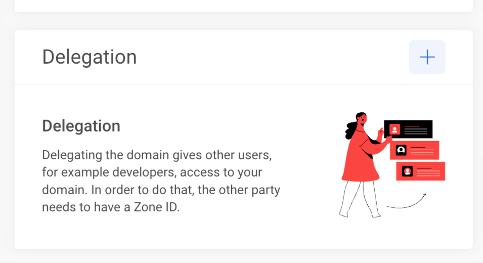 Next, scroll a bit down and click on the plus icon in the Delegation box.