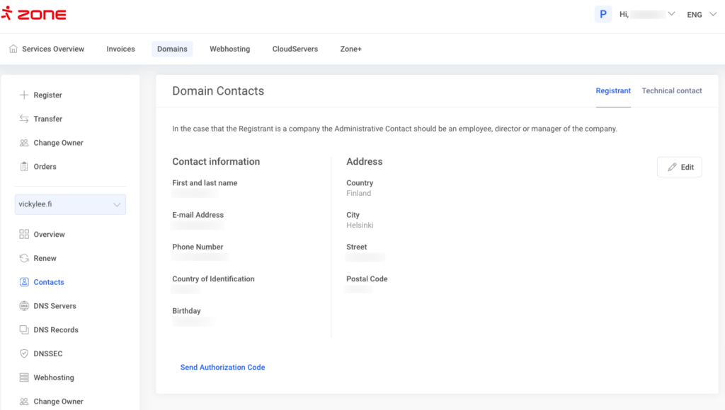 On the next page, you can check and edit the contacts associated with the domain, such as the owner’s email address.