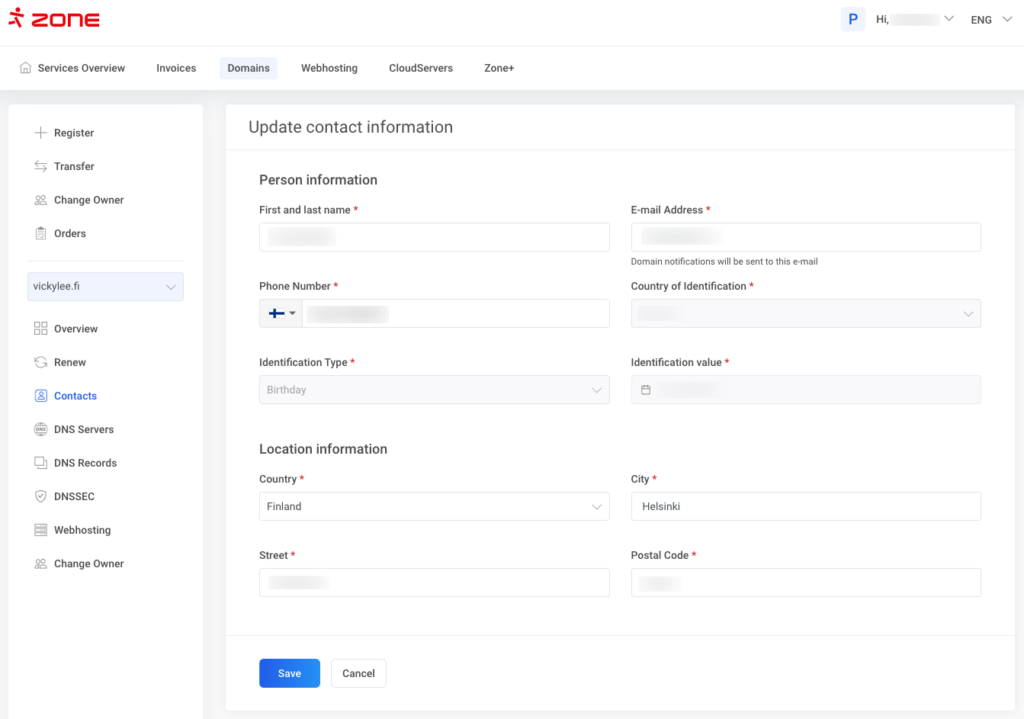Here you will find instructions on how to change domain settings in My Zone control panel.