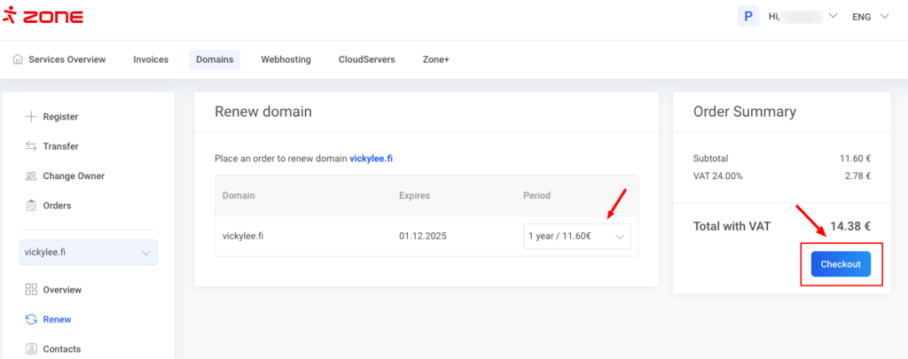 The easiest way to renew your domain name(s) is to go to the Service Overview