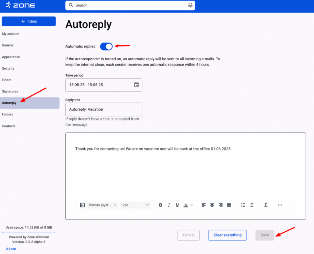 Setting up an autoreply requires logging in Zone Webmail Webmail first.