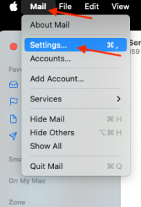 If you’d like to configure your incoming or outgoing mail server later, or change your password, open Mac Mail, next to the Apple icon choose Mail and Settings.