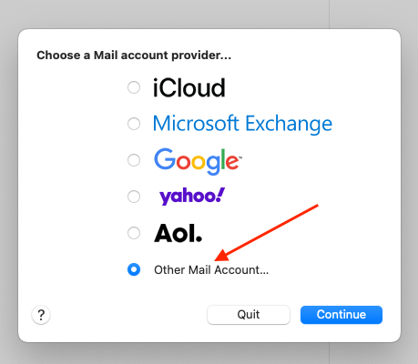 If you’re setting up Mac Mail for the first time, open the Mail application, choose Other Mail Account and click Continue.
