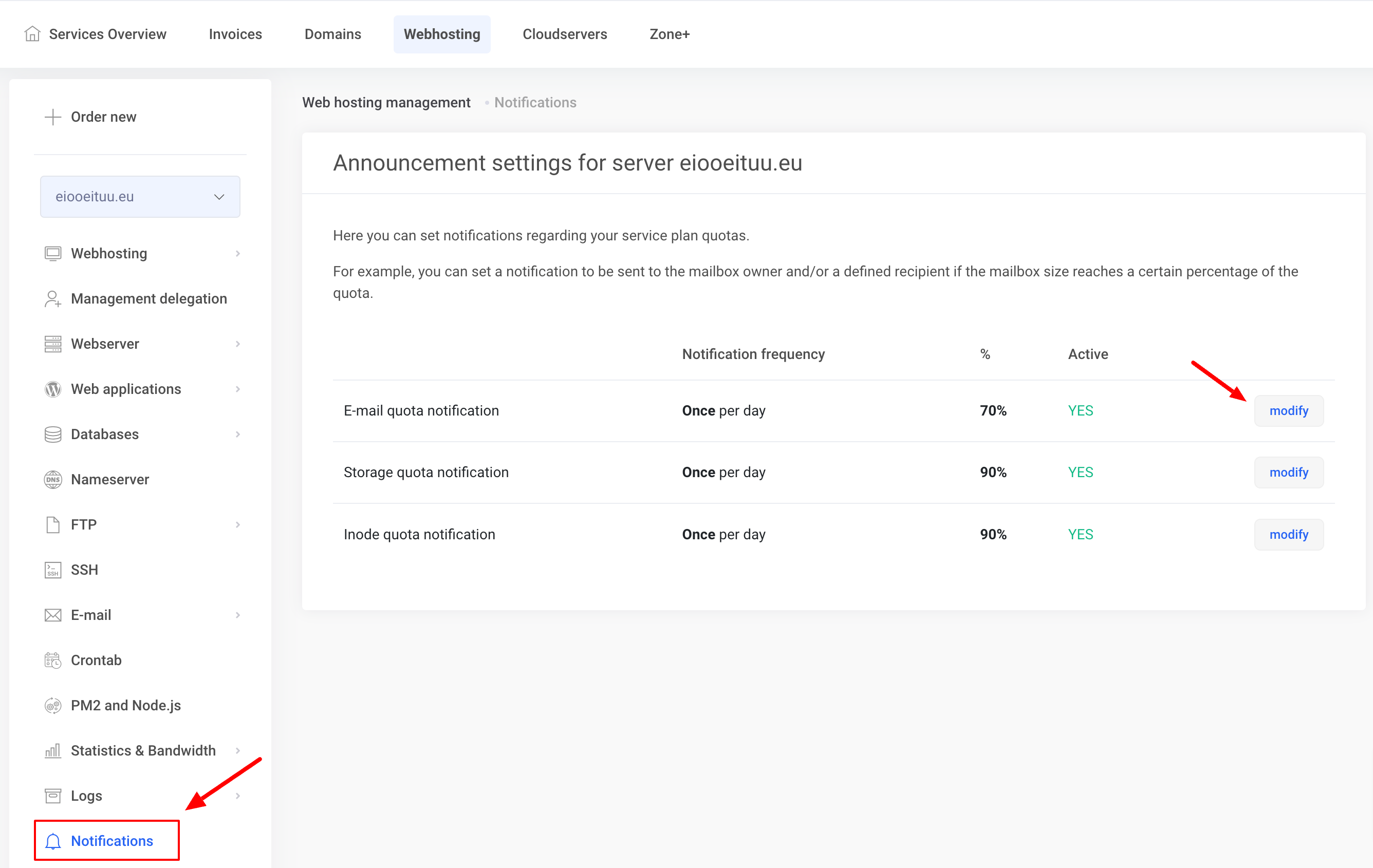 3. Web-hosting quota notifications