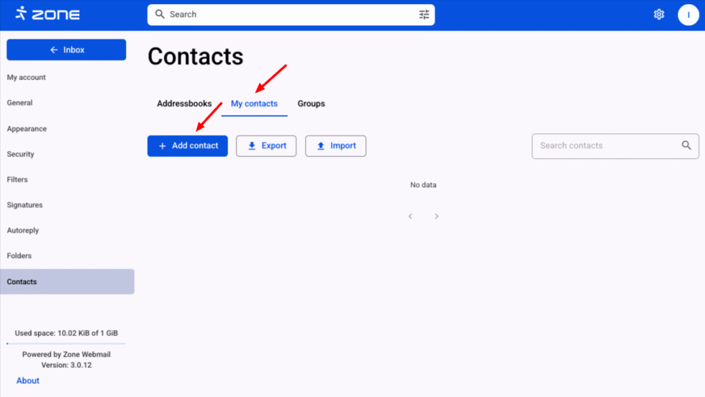 It is possible to add and save contacts in the Zone webmail.