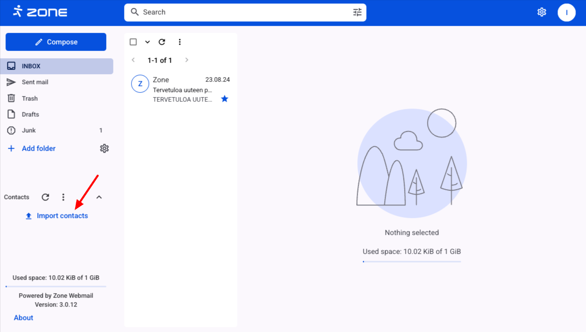 Address book can be added by clicking on the gear icon on the top right and View all settings.
