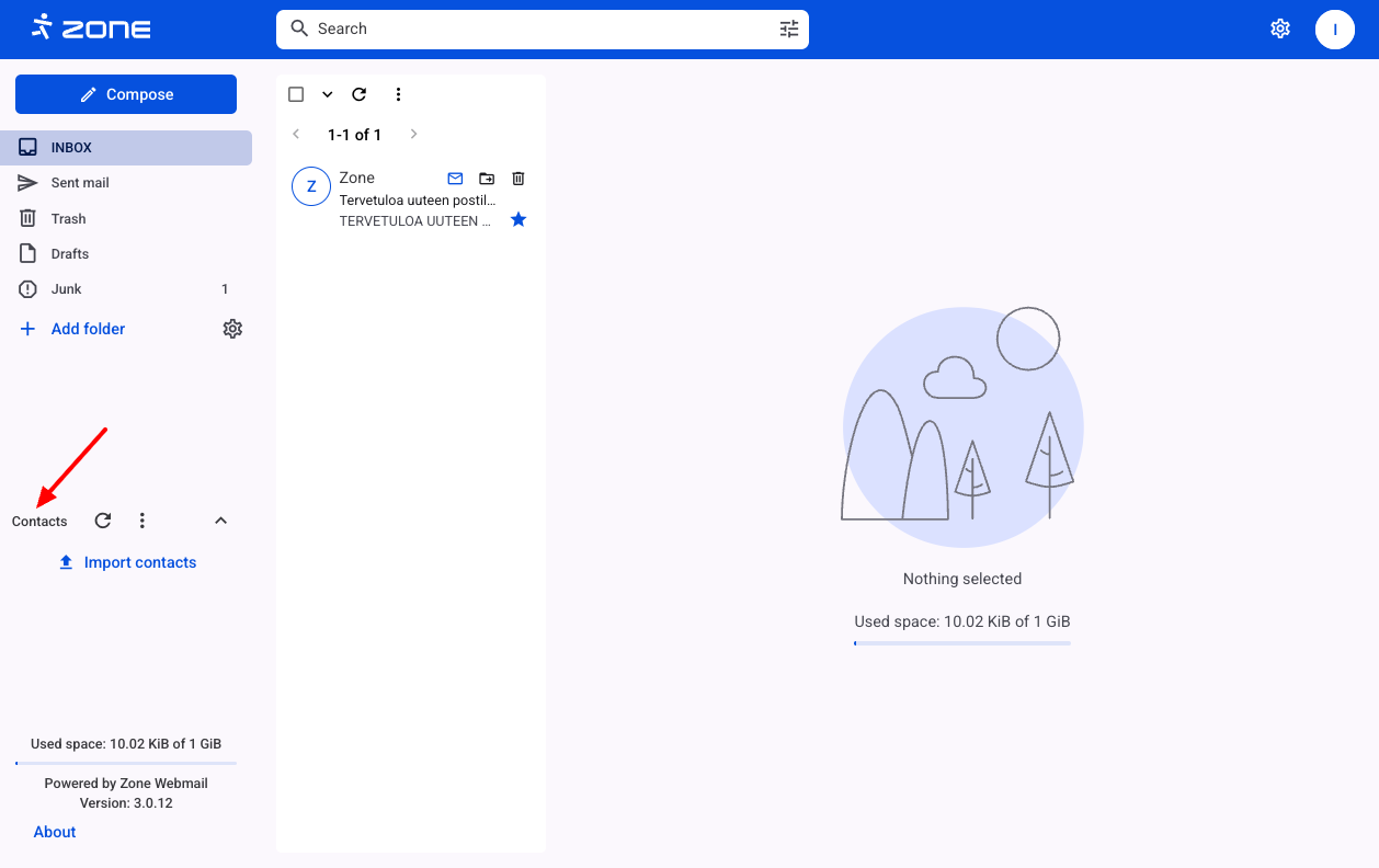 Another way to import is by clicking Import contacts on the main webmail page.