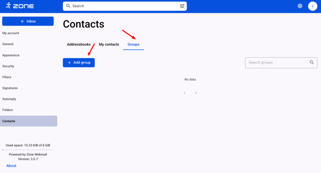 If you have several contacts, you can also split them into separate groups. To create a group, click on the Add group button.