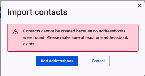 If you try to add contacts before adding them to the address book, the following error message is displayed.