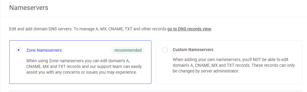 n the following window, click on the option “Zone Nameservers” and then “Confirm Zone Nameservers”