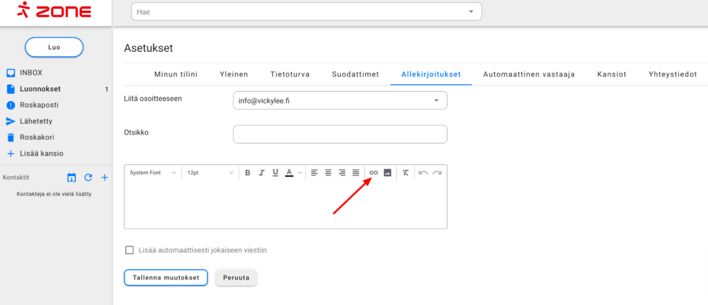 Allekirjoituksen lisääminen Webmailiin on Zonessa erittäin helppoa ja tuossa ympäristössä saat hallita niitä tarpeesi mukaan.