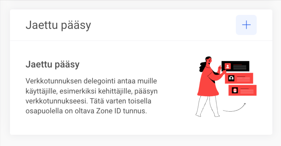 Hallinnon delegoinnilla (Pääsyoikeuden jakaminen) voidaan antaa webhotelli-käyttöoikeus esimerkiksi nettikehittäjälle.