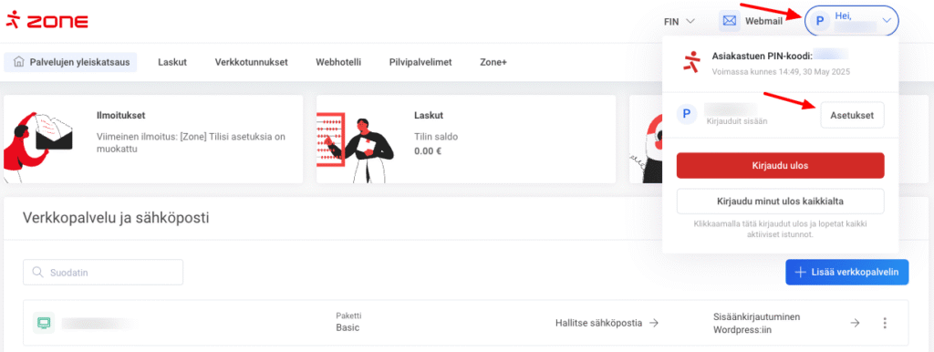 Jos olet unohtanut salasanasi ja ZoneID-käyttäjätunnuksesi, lähetä pyyntö tuki@speedzone.fi -osoitteeseen tilisi yhteystietoihin liittyvästä sähköpostiosoitteesta ja pyydä meitä lähettämään sinulle salasanan vaihtolinkki. Pyydämme sinua mainitsemaan myös kaikki kyseisellä tililläsi olevat palvelut (verkkotunnukset, palvelimet).