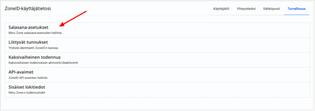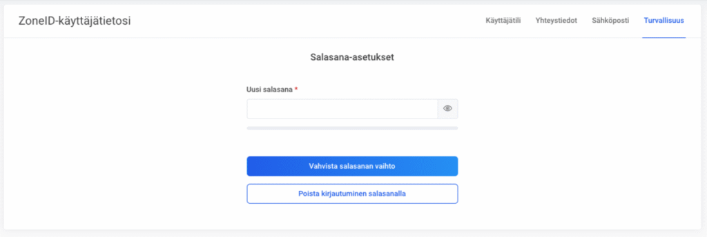 Kirjautuminen salasanalla edellyttää ZoneID-tiliä ja asiakas asettaa salasanan ZoneID-tiliä luodessaan.