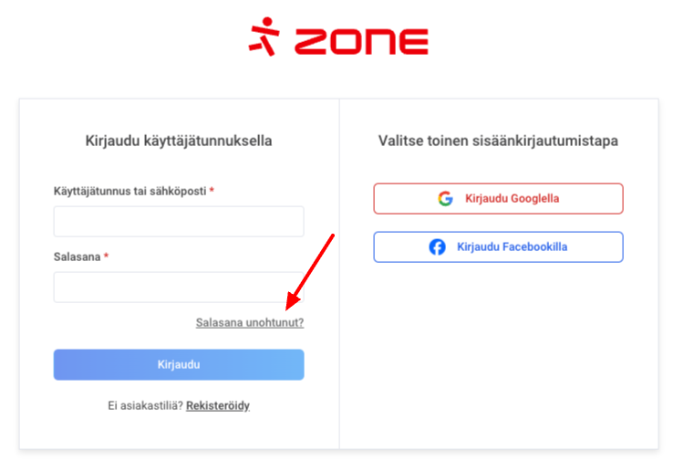 Jos olet unohtanut salasanasi, voit palauttaa ZoneID-tilisi kahdella eri tavalla: