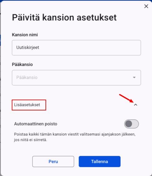 -kohdan vieressä olevaa nuolta, sinulle annetaan mahdollisuus määrittää automaattinen poisto.