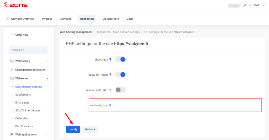 Aktivoi DKIM kohdassa “My Zone” and choose Webhotelli