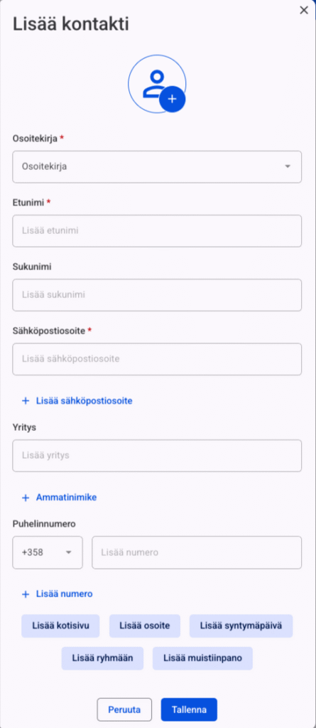 Yhteystietojen lisääminen