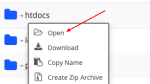 Avaa WebFTP:ssä pääverkkotunnuksessa sijaitsevan sovelluksen htdocs -hakemisto. Jos kyseessä on aliverkkotunnus, avaa hakemisto, jonka nimi on aliverkkotunnuksen nimi.